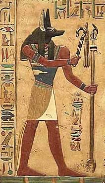 Os deuses egípcios eram zooantropomórficos, metade humano e metade animal. Abaixo o deus Anúbis.