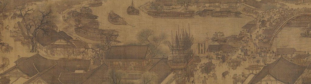 Parte da pintura “Ao longo do rio durante o Festival Qinggming”. (Pintura inteira: https://en.wikipedia.org/wiki/Along_the_River_During_the_Qingming_Festival)