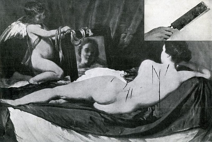 A Vênus em seu espelho foi adquirida pela Galeria Nacional em Londres. No ano de 1914, uma sufragista, Mary Richardson, atacou a pintura de Velázquez com um cutelo para protestar contra a prisão de outra sufragista, Emmeline Pankhurst.