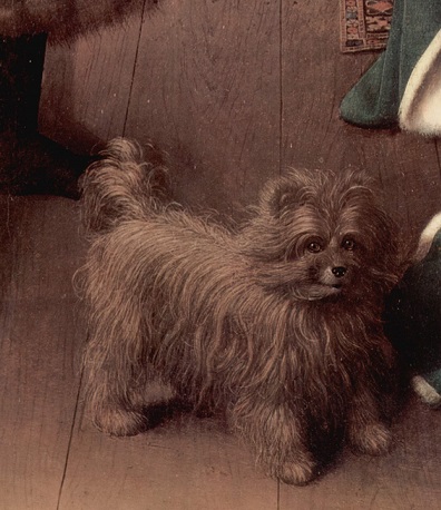 Giovanni Arnolfini era um rico comerciante de Bruges, uma região dos países baixos, onde fica a Bélgica hoje em dia. Esta pintura foi analisada por historiadores de arte que acham que esta pintura é um contrato de casamento. O gesto feito pelo homem, o jeito como segura a mão da mulher, o posicionamento dos dois na pintura, com Eyck pintando a mulher na parte interna da casa e o homem perto da janela. E também tem o detalhe que passa despercebido, o cachorrinho.