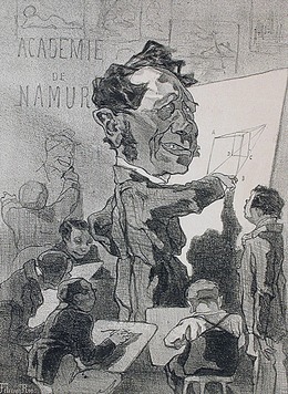 Podemos ver na imagem acima que Rops deve ter recebido uma educação artística bem formal e apesar de ter aprendido a pintar paisagens, Félicien Rops tem preferência por desenhar caricaturas, um desses desenhos foi uma caricatura de seu professor Ferndinand Marinus.