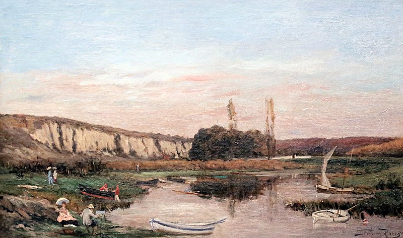 O artista Félicien Rops nasceu numa família muito rica, seu contato com representações artísticas vem do seu pai que vendia tecidos estampados. Como em toda família de muitos recursos financeiros, Félicien Rops foi educado por professores particulares, por jesuítas, e após a morte de seu pai, o artista passou a frequentar a Academia de Belas Artes de Namur. Rops aprendeu técnicas artísticas com Ferdinand Marinus, um artista especializado em paisagens. Uma das pinturas de Marinus se chama Uma balsa no rio Meuse em Houx.