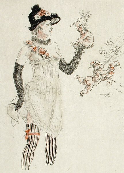 O artista gostava muito de retratar mulheres e sua vida boêmia um pouco desregrada. Uma outra pintura/desenho de Félicien Rops que mostram seu tema favorito se chama The Drunken Dandy: